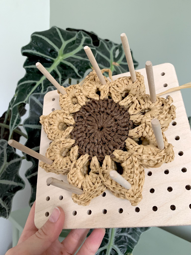 Inspired by the beauty of the wild, these sunflower coasters have been hand crocheted using raffia yarn.